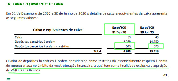 Nesta altura é bom que seja recordado o acordo de reestruturação de 09/10/2019, mas sobretudo que era esta a situação em 30/12/2020 da conta reserva