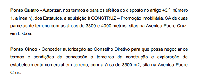 Por outro lado e isso é que seria mais interessante obter pormenores, na celebre AG de 03Fev2018, foi autorizado a aquisição pelo Sporting do património existente na Construz, julgo que eram uns terrenos, na altura foi dada esta explicação: