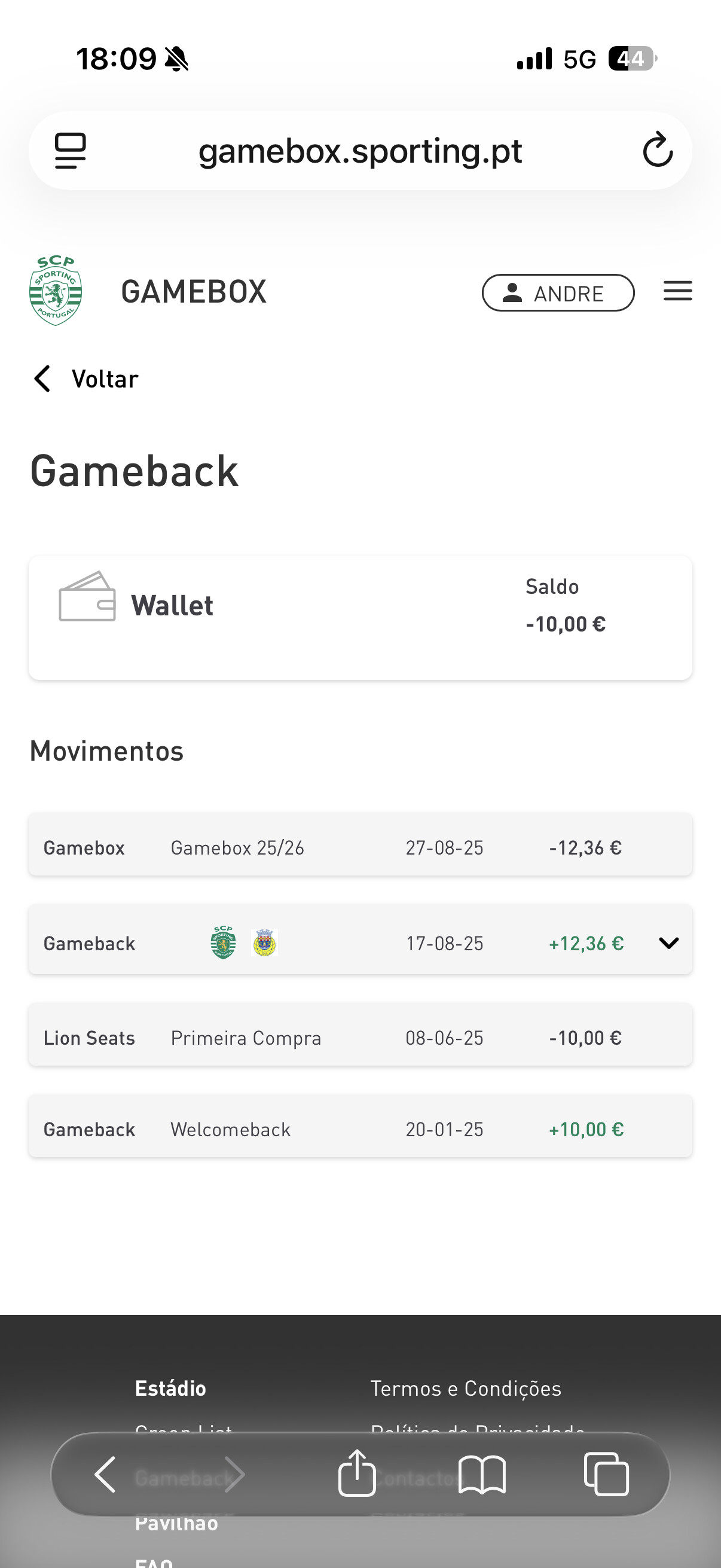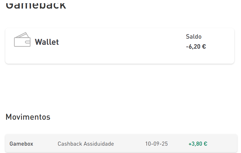 Enretanto acho passou a 35% o gameback segundo email recebido da venda do lugar da GB da minha filha. 2.85€ de 10€