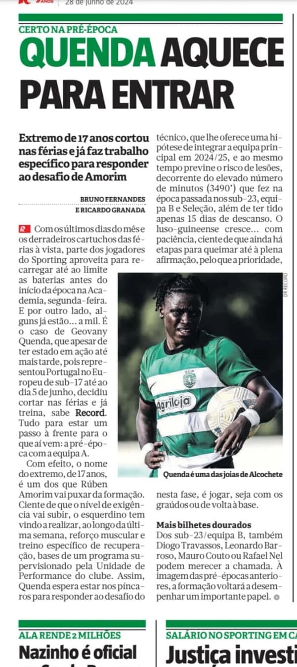 Não estamos a falar de um Catamo(sem querer desvalorizar o mesmo), o Quenda não só é muito mais completo como tem potencial para ser top mundial.
