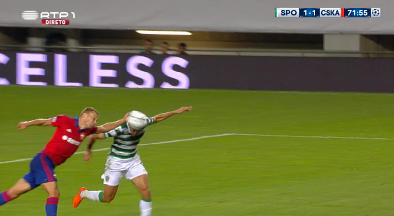 Quis o destino que fosse esta equipa turca que tivesse arbitrado a 1ª mão do Sporting-CSKA e que fosse exactamente o mesmo árbitro de baliza Hüseyin Göçek quem tivesse vista privilegiada sobre o lance onde Vasili Berezutski, de frente para ele, tira a bola da cabeça de Islam Slimani com uma jogada de andebol.