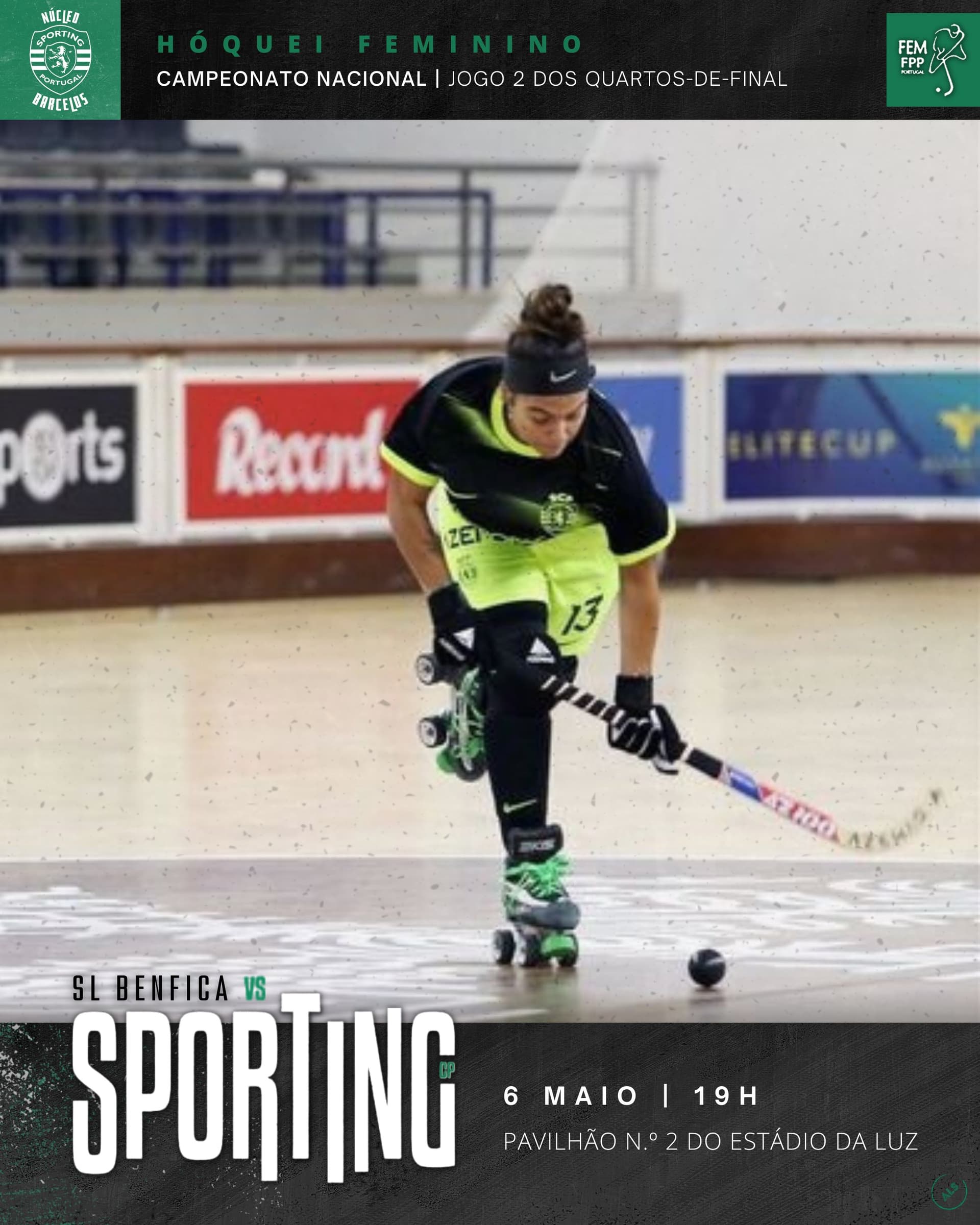 A equipa feminina de hóquei em patins do Sporting Clube de Portugal recebeu, esta quarta-feira, o SL Benfica, tendo perdido por 2-6 no primeiro jogo dos quartos-de-final dos play-offs do Campeonato Nacional.