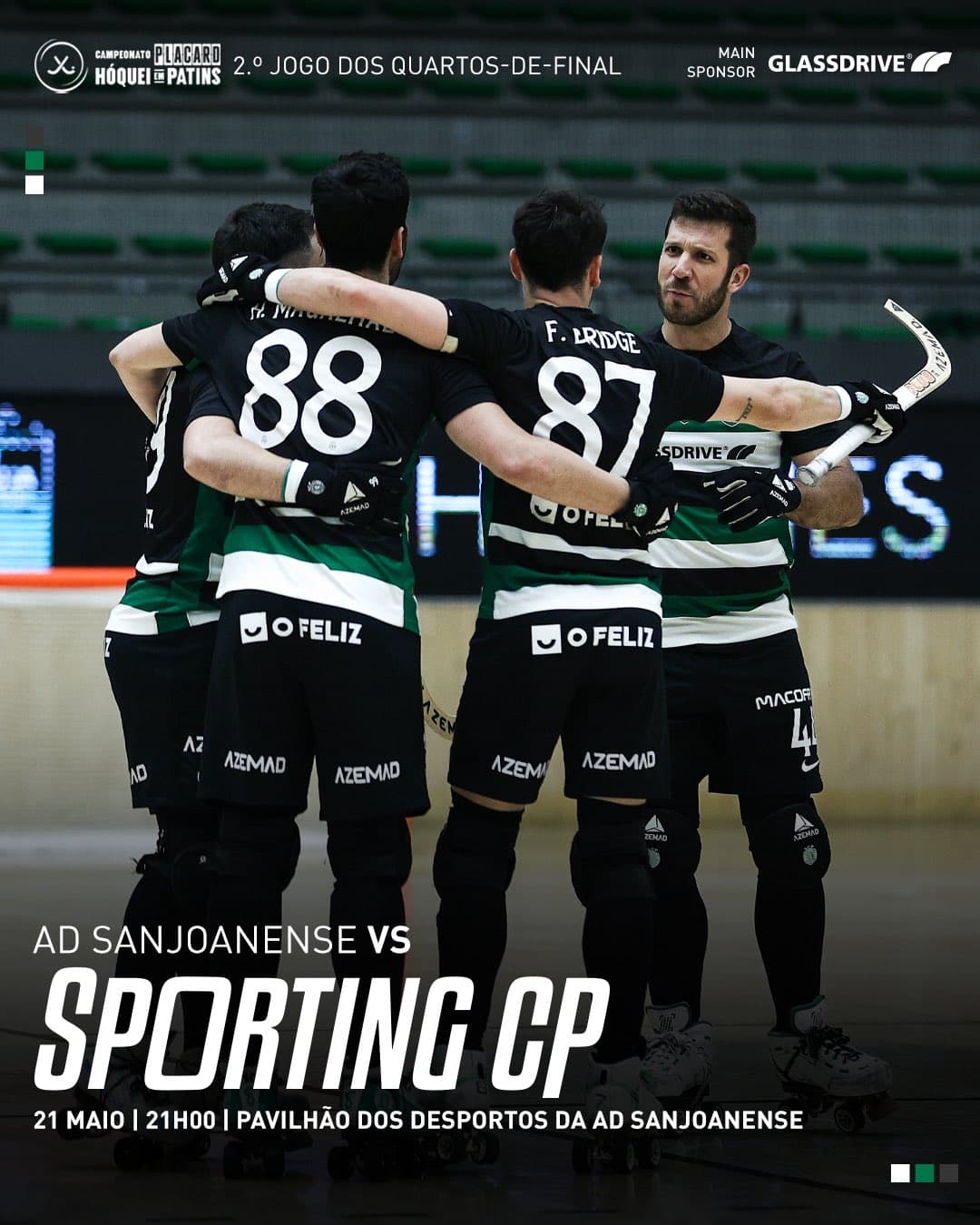 A equipa principal de hóquei em patins do Sporting Clube de Portugal recebeu e venceu, nesta sexta-feira, a AD Sanjoanense por 5-2 no primeiro jogo dos quartos-de-final do play off do Campeonato Nacional.