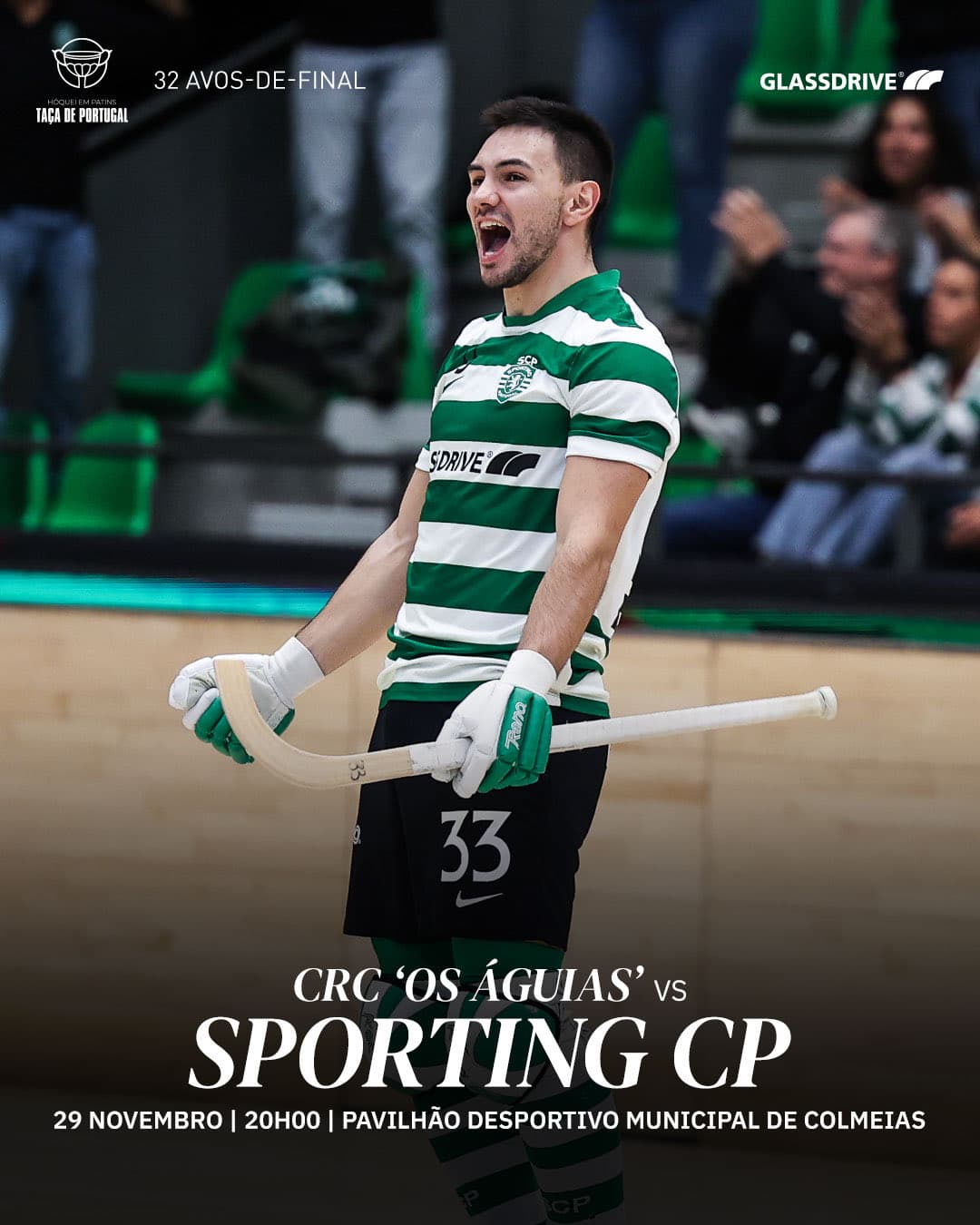 A equipa de hóquei em patins do Sporting Clube de Portugal desloca-se a Leiria para este sábado, às 20h00, defrontar o CRC Os Águias da Memória, em partida referente aos 32-avos-de-final da Taça de Portugal.