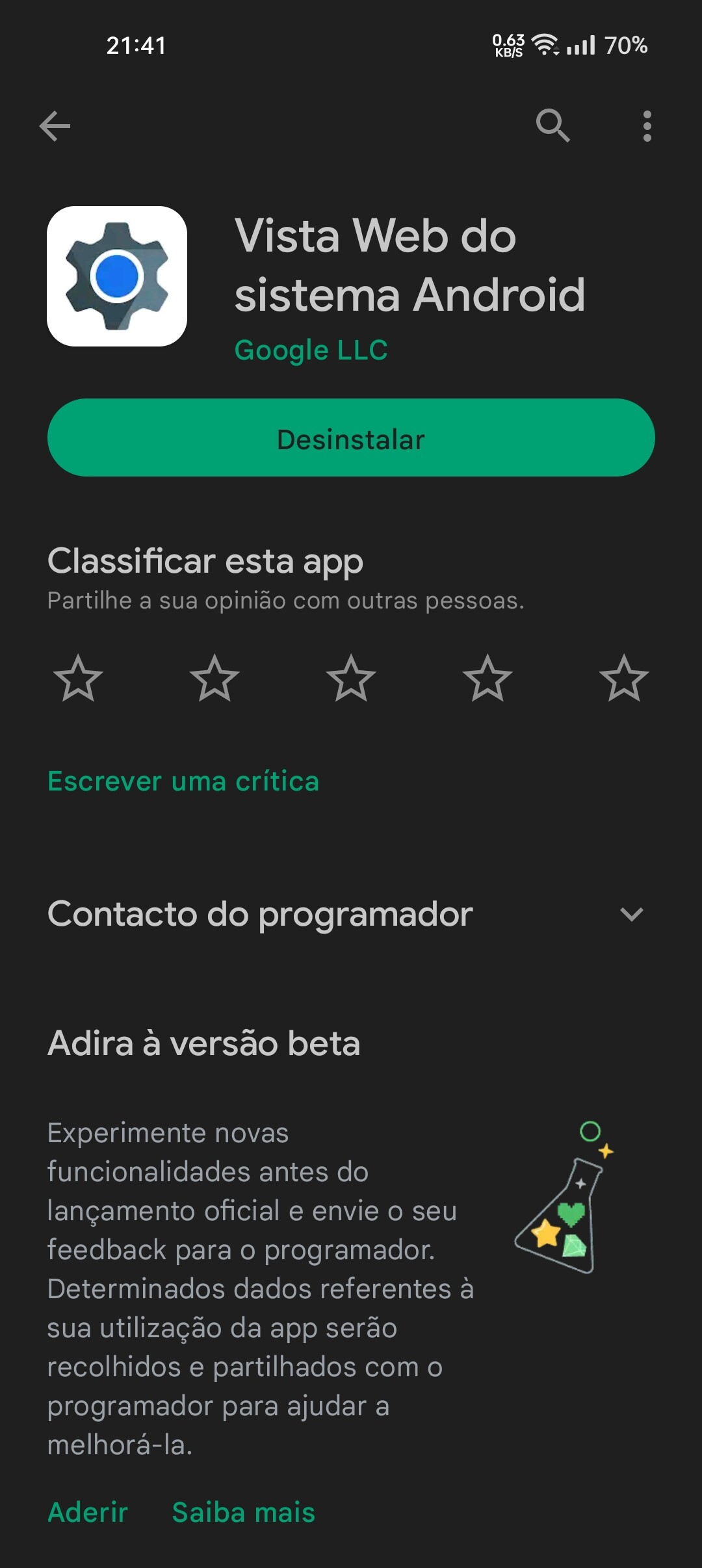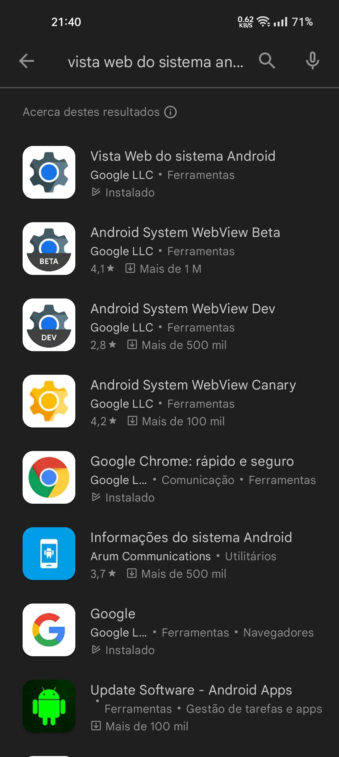 Tenho um xiaomi redmi note 10 pro e não consigo atualizar o google chrome e a vista web do sistema android. Faz o donwload mas depois não atualiza.