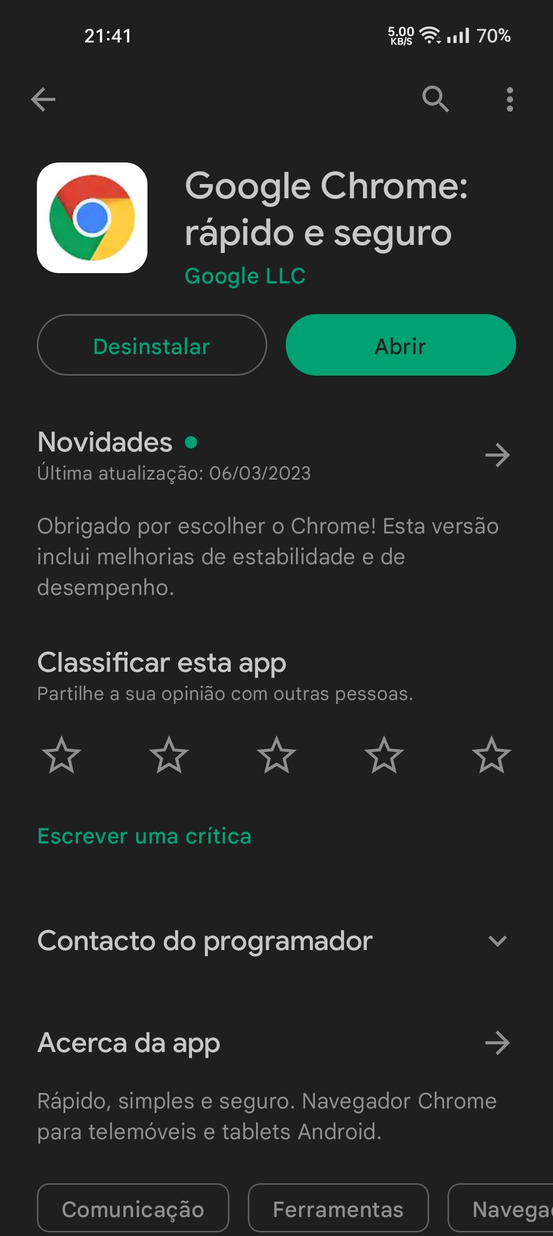 Eu sou um nabo. As outras app consigo desinstalar etc. O chrome não consigo e a outra nem sei onde a encontrar