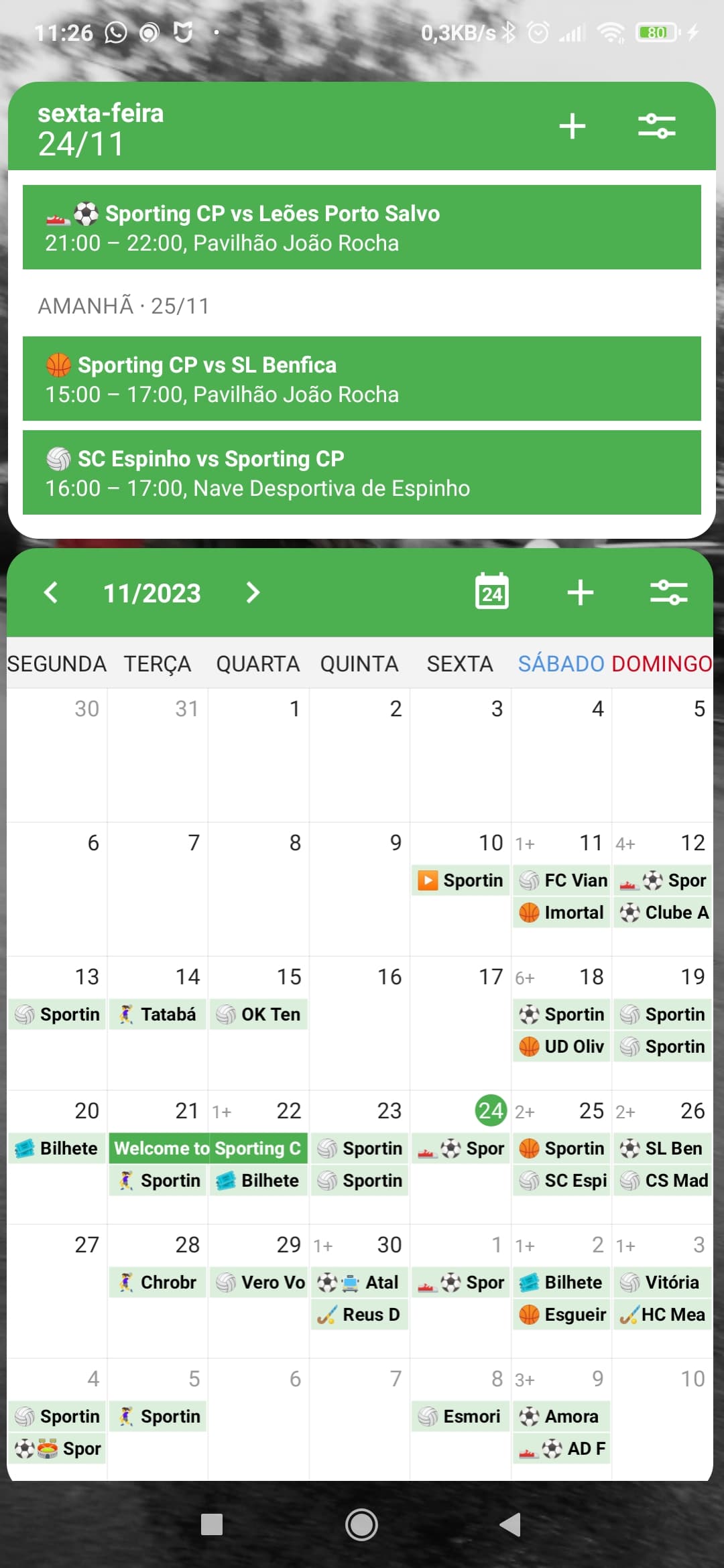 True, eu também estava sempre a ir à agenda no site do Sporting ver. Já agora, uma coisa que repareii agora a tentar mudar a cor é que, além dos jogos, também aparece quando começar a vender os bilhetes para os jogos de futebol.