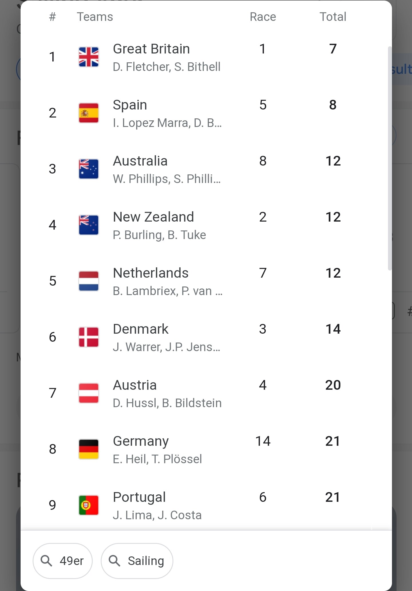 Não percebo nada de vela, mas dá a ideia que se soma as classificações obtidas descartando-se a pior. Olhando agora para isto, parece que não vai ser fácil subir na classificação. São 19 equipas e estamos em 9° quando faltam 8 regatas.
