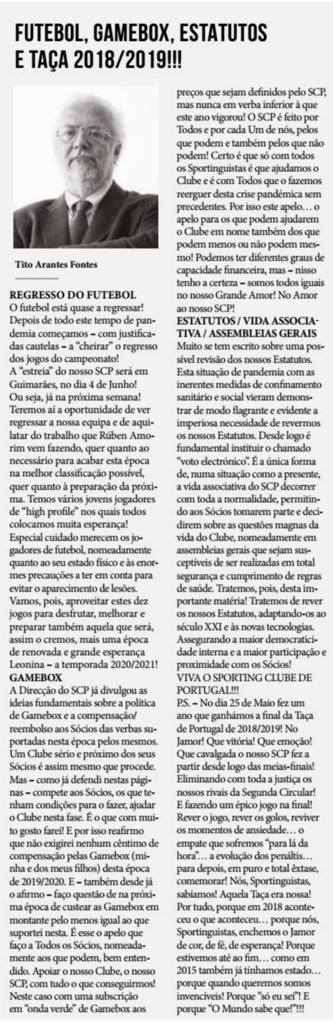 Neste contexto importa, mais do que nunca, encarar a realidade como ela é e não como desejaríamos que fosse. Não existem panaceias para o caminho que o Clube terá de percorrer e é fundamental a tomada de decisões com uma visão sistémica, de longo prazo e com a prudência que as circunstâncias exigem.
