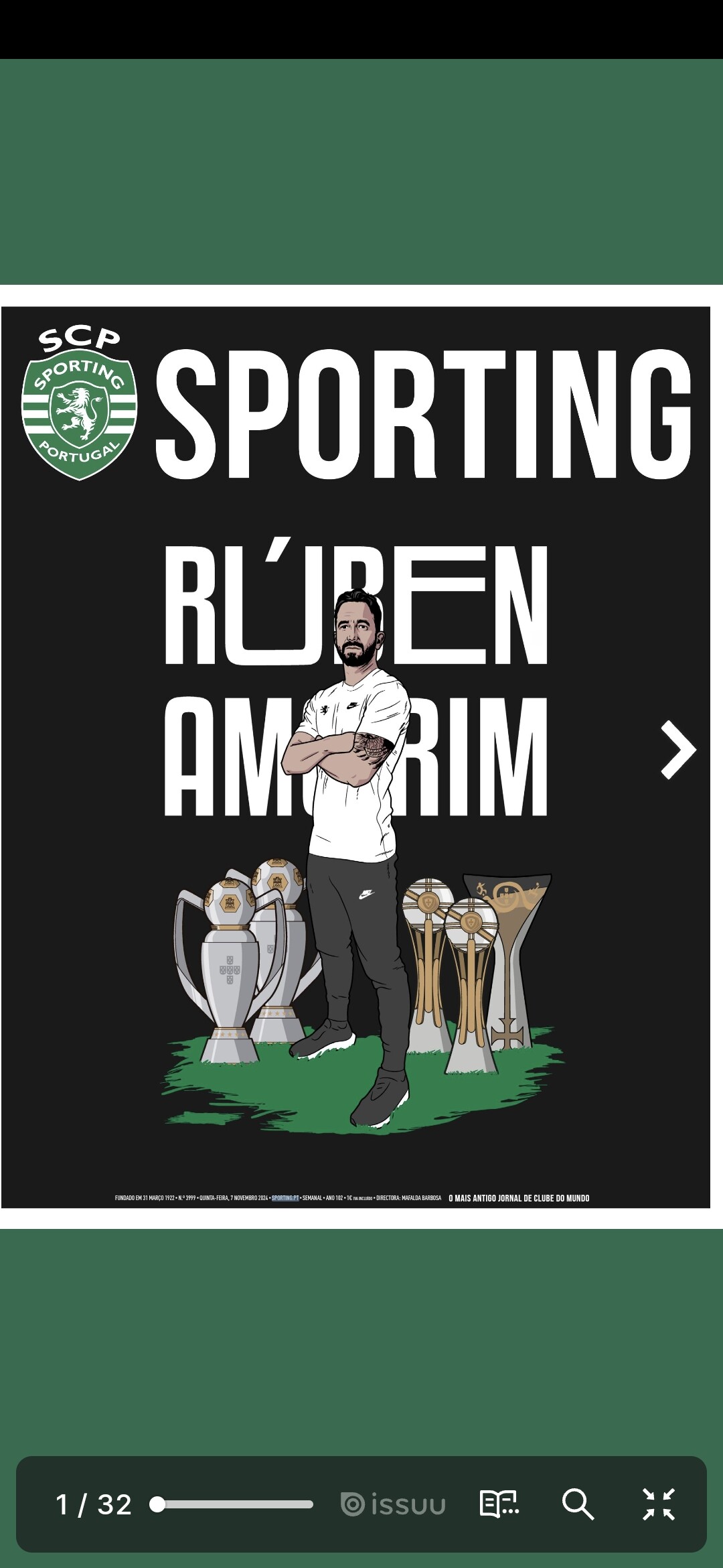 Já está disponível, em versão papel e em formato digital, o Jornal Sporting desta semana. A edição 3999 do semanário verde e branco tem como manchete Rúben Amorim.