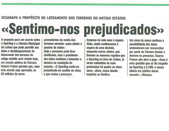 Espero sinceramente que o Acordo seja conseguido e que seja Bom para o SPORTING e para a Cidade.
