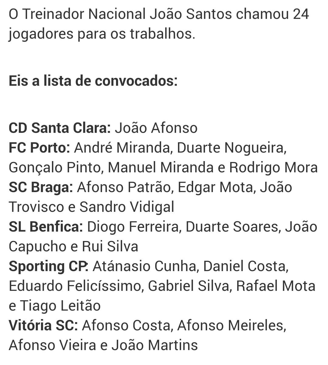 Daniel Costa e Atanásio Cunha, se não forem estreias são das primeiras chamadas, pois na época passada não eram chamados à Seleção Portuguesa de Sub-15, mas saúdasse a convocação deles, merecem