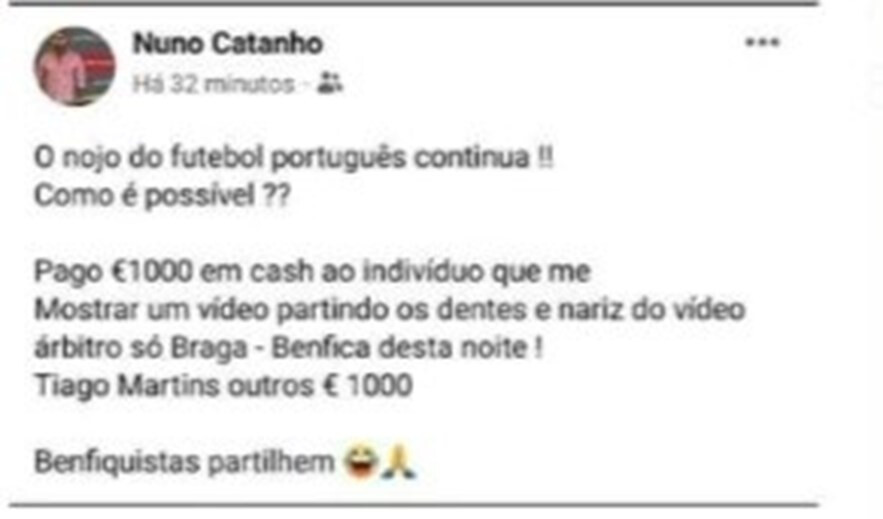Tendo a Federação de Patinagem de Portugal tomado conhecimento das declarações de um árbitro do quadro nacional de arbitragem de hóquei em patins nas suas redes sociais, o referido árbitro encontra-se desde já suspenso da atividade de arbitragem e já foi desencadeado um processo de inquérito junto do Conselho de Disciplina. A FPP repudia as declarações e a forma de estar no desporto do referido árbitro. Esta Federação defende os valores da ética e fair play na prática desportiva e tudo fará para assegurar a promoção dos mesmos nas suas competições e junto dos seus agentes desportivos", lê-se no comunicado da Federação de Patinagem de Portugal.