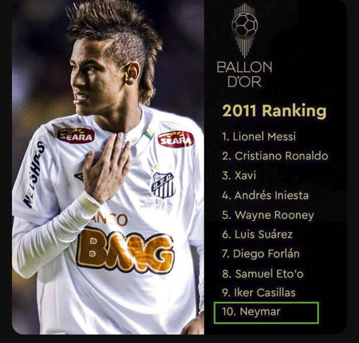 Porra…o Neymar ficou no top 10 do premio bola de ouro quando ainda jogava no Santos…sem esquecer aquilo que fez no Barcelona e mesmo no PSG onde era o melhor jogador. Na seleção é o melhor marcador da história…