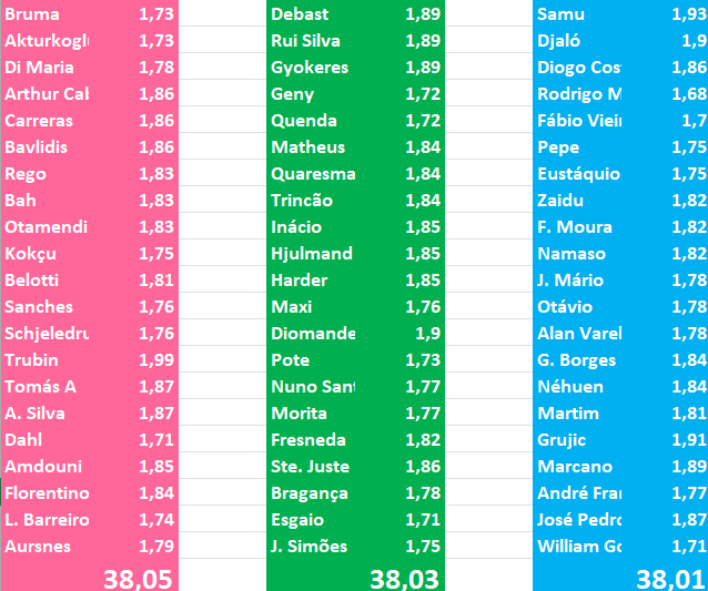 Desde há algum tempo que tenho em mente que estes cabrões têm uma equipa mais alta que a nossa e ainda mais que a do Porto, o que na minha mente daria alguma vantagem em jogos mais físicos. No entanto, fiquei espantado agora em verificar a altura dos 3.