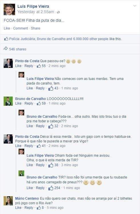 "É por demasiado evidente que há uma cabala, quando o teu clube é investigado e constituido por merdetas, e outros que aos olhos de toda a gente cometem crimes financeiros (sporting) e de mafia (fcporto) e nem sequer há investigações.
