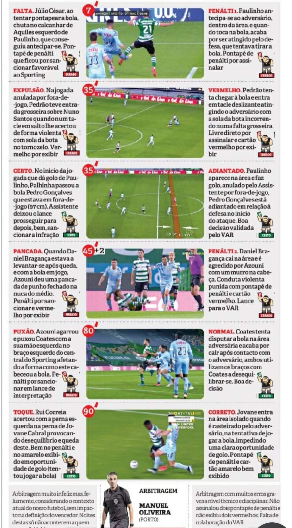 O Inácio em Braga levou o 2 amarelo por muito menos, aí não custou expulsar a meio da primeira parte. Expulsar um jogador do Benfica não é a mesma coisa que expulsar um jogador do Sporting.