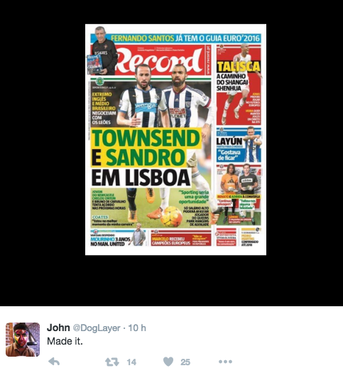 Esta confirmado tothenham da 25M de euros mais o passe de townsend. Ahaha quem me dera nao custa sonhar.