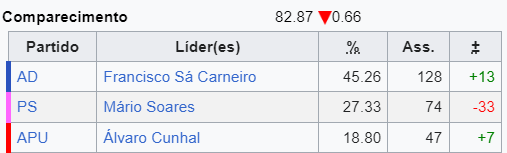A APU em 1979 teve uma % ligeiramente superior a esta do Chega.