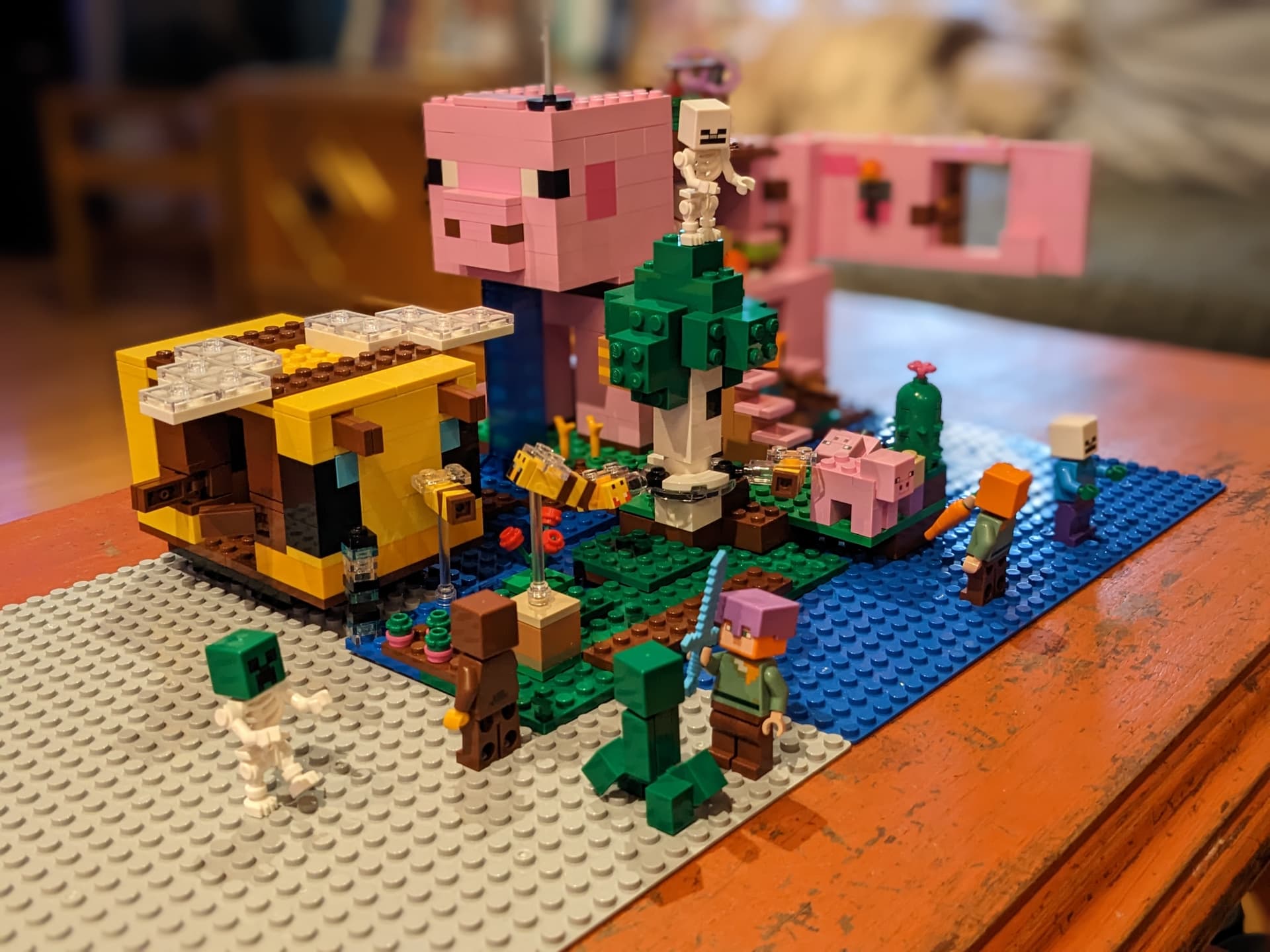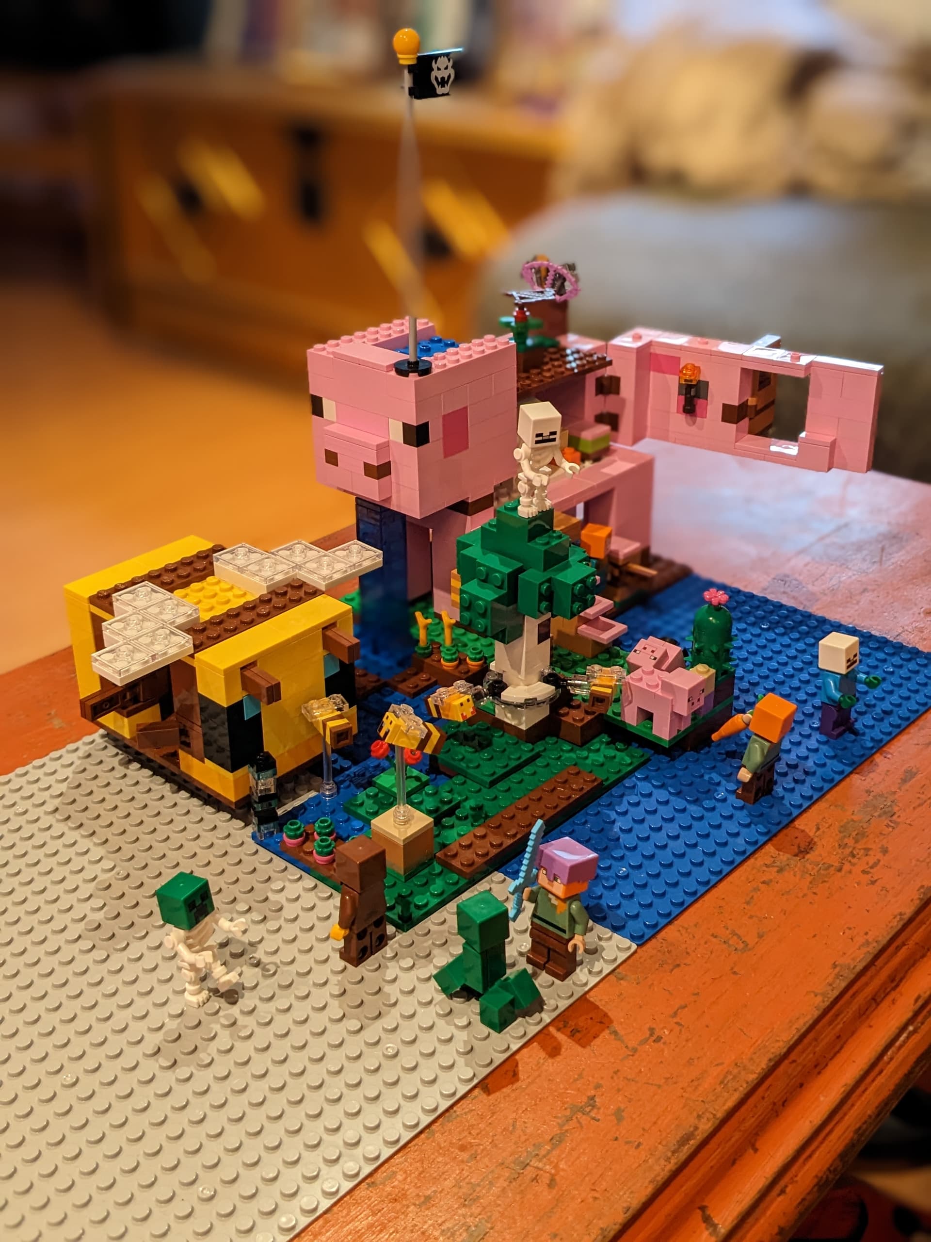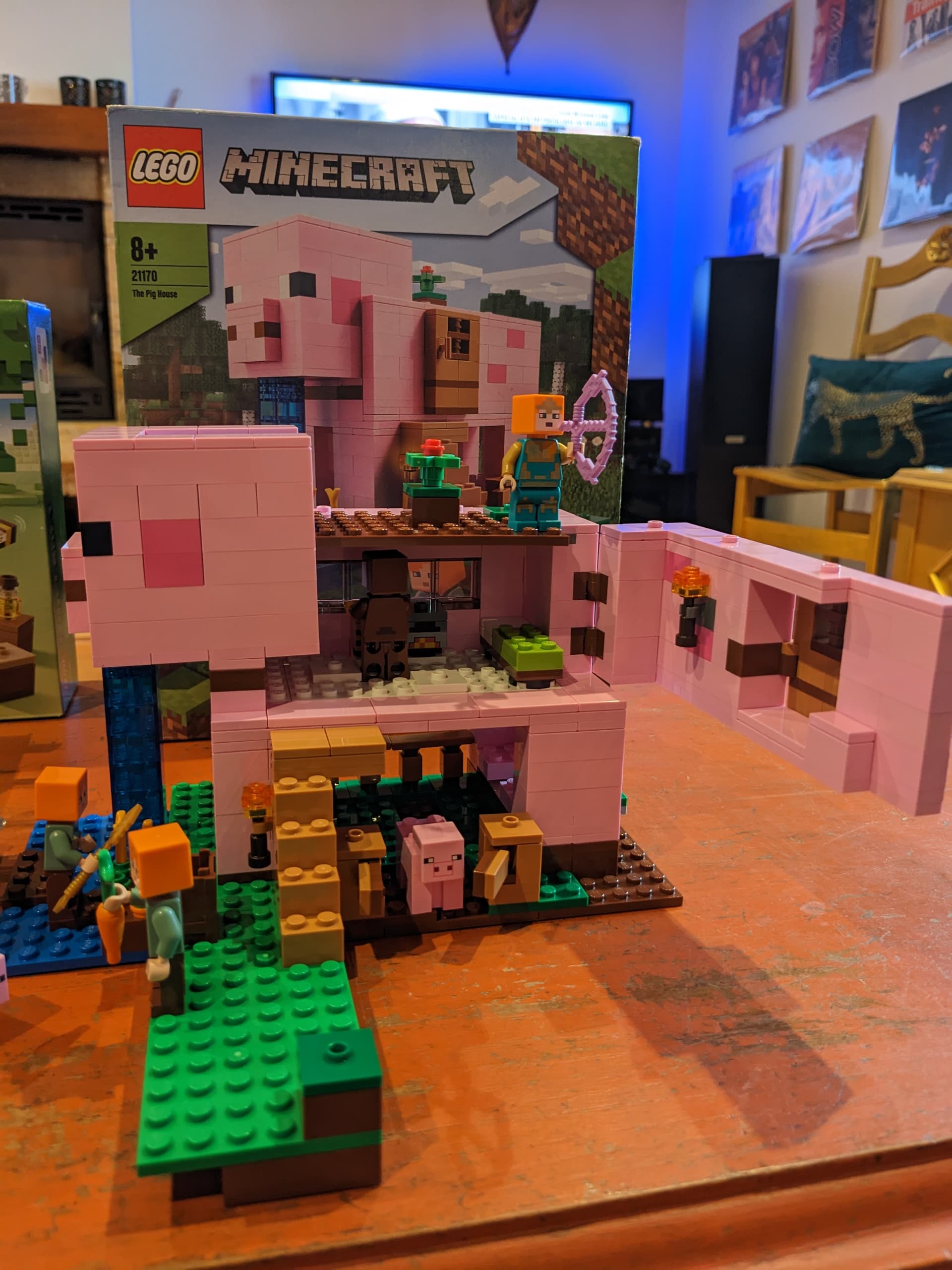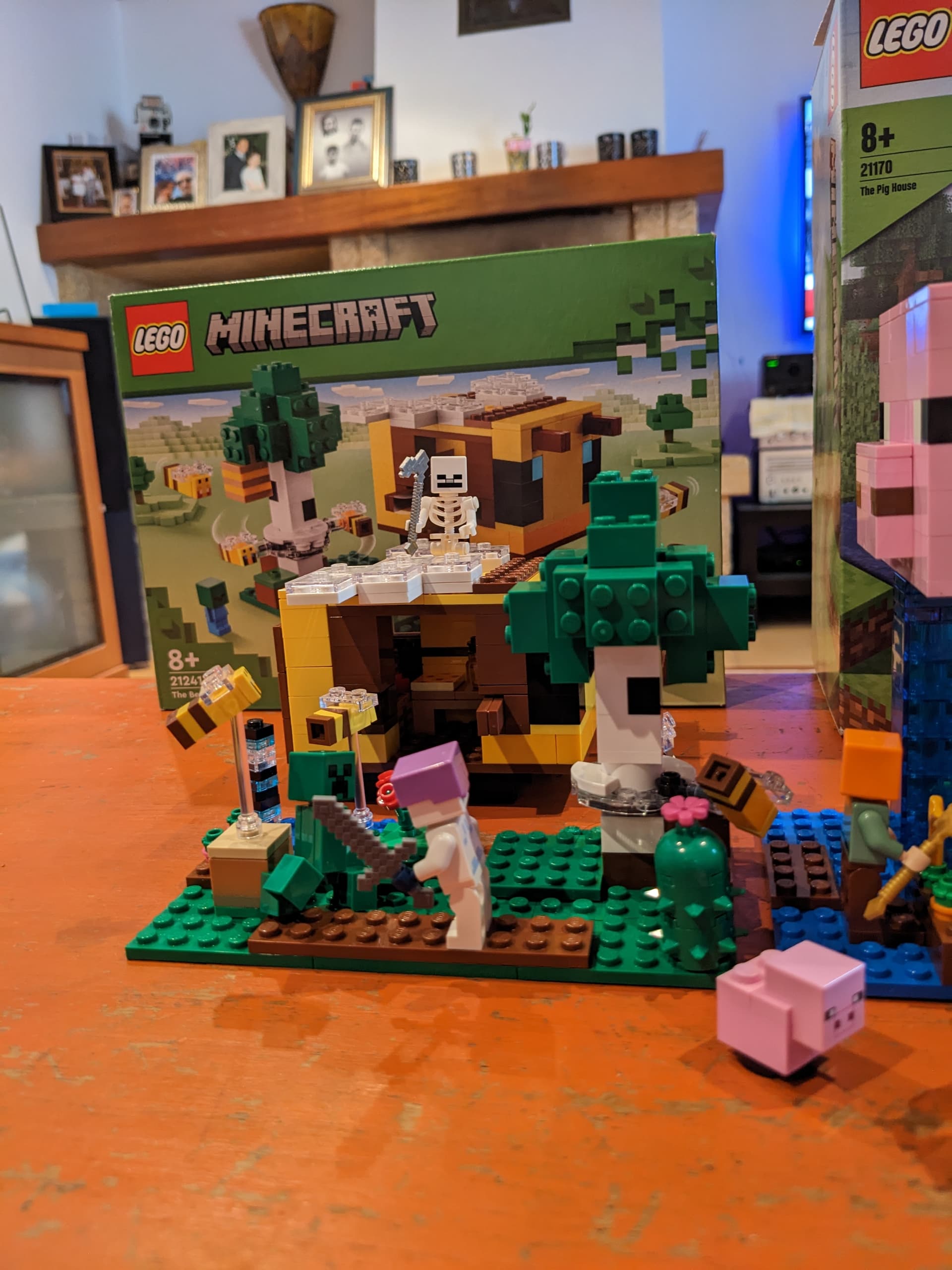 Também comprei um pequenito da Minecraft para o meu miúdo. Acho que demorei 20 minutos a fazer tudo. Algo que não gostava e agora aprecio. Quase tudo o que ele tem é de coleções pequenas, mas já tem alguns conjuntos.