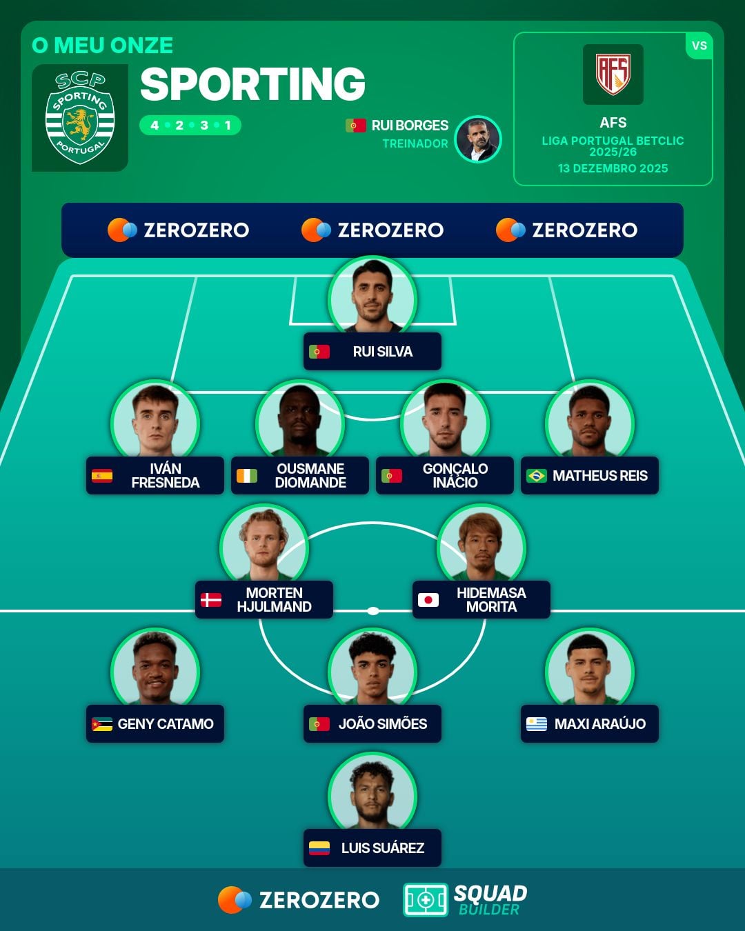 Geny e Diomande fazem o último jogo (com sorte têm uma lesão leve de 2 semanas e as seleções dizem que para isso vão buscar outros) e descansa Hjulmund, Simões, Maxi e Inácio (e talvez Trincão se tiver recuperado)