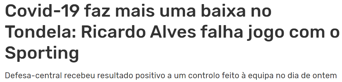 Hoje depois da vergonha de ontem aposto que bastará haver um novo caso no Tondela para que a DGS venha adiar o jogo alegando questões de saúde publica.