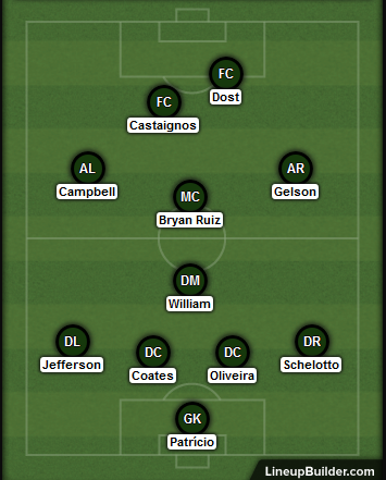 William terá forçosamente que voltar a ser o Sir para se manter a titular, caso contrário, Palhinha lá para dentro. Banco para: Beto, Esgaio/Jefferson, Semedo, Palhinha, BCesar, Gauld e Dala.