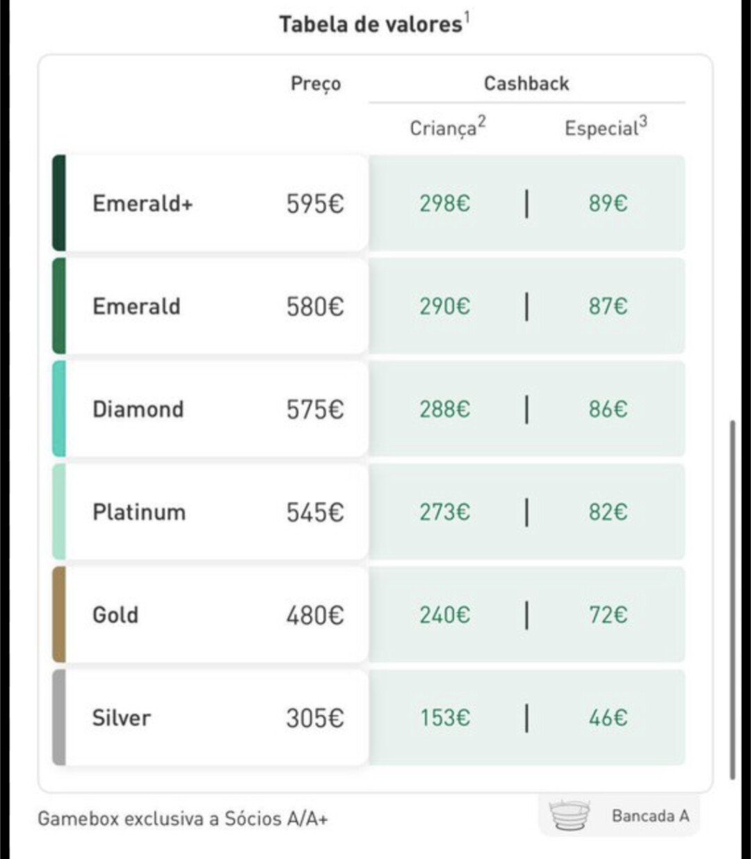 Paguei na época 24/25 Setor A26 450 euros de Gamebox, agora está nos 595 (Realmente não são 700 , são 600).