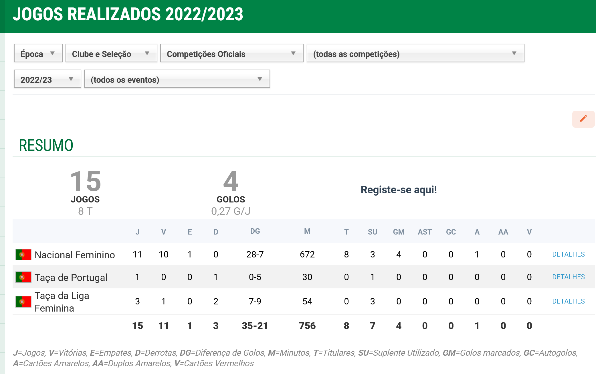 Não jogou as 10 primeiras jornadas da Liga BPI 2022-2023