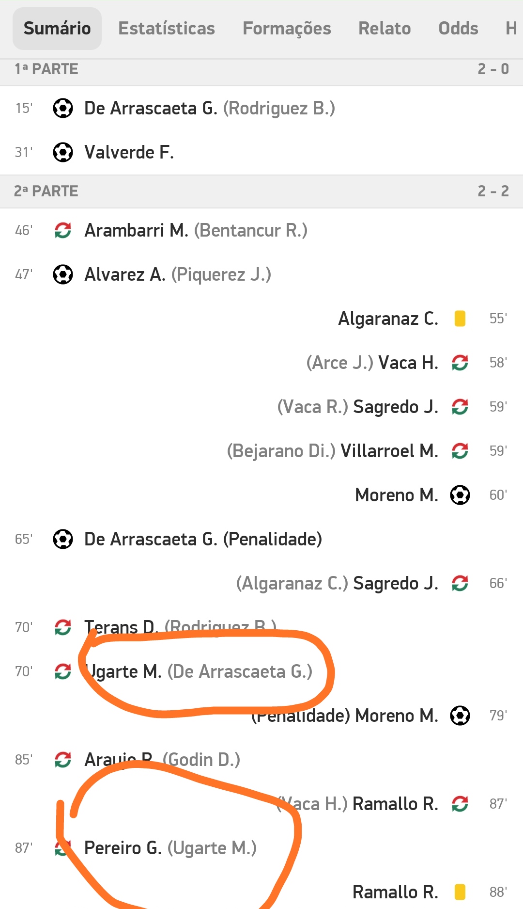 Não foi substituído, continua em campo, fez à pouco uma excelente recuperação, “cabrito”, transporte e cruzamento que podia ter dado em golo não fosse um falhanço do Alvarez, é um trator, não tem grande tecnica mas é um monstro em atitude, perfeito backup do Palhinha.