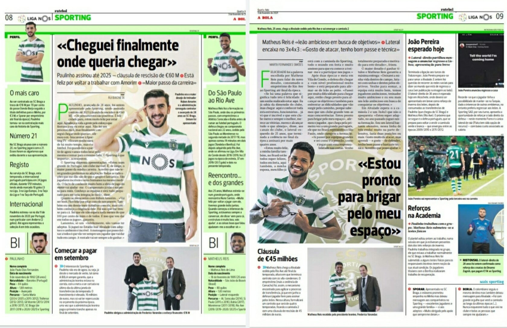 Alguém consegue disponibilizar a notícia da capa de hoje do record, a dizer que Paulista, Renan e LP vão para o Brasil?