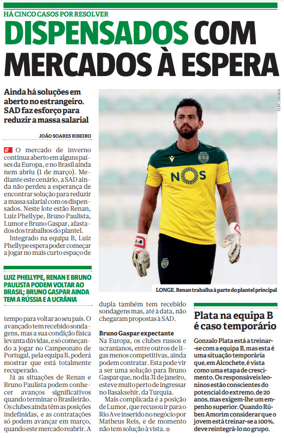 Sporting CP procura colocar Renan e Luiz Phellype, com mercado brasileiro a abrir no mês de março