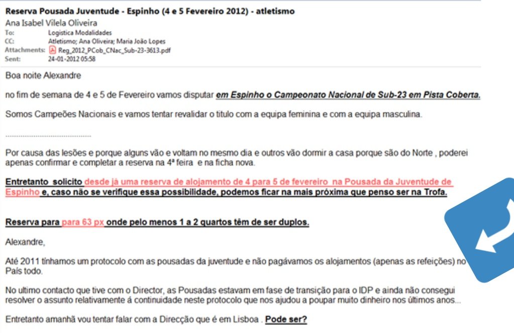 Através deste e-mail, percebe-se que o Benfica usufruiu, entre 2007 e 2011, gratuitamente das pousadas da juventude, chegando ao cúmulo de reservar 63 quartos e não pagar sequer uma estadia, sendo unicamente cobradas as refeições. E agora vem a questão: o protocolo que nunca foi assinado, previsa estas condições “especiais”?