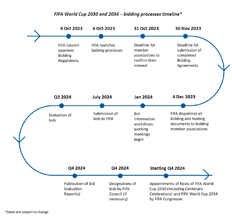 Praticamente nem vai ser preciso abrir uma candidatura para o mundial de 2034, porque nenhuma confederação continental poderá se candidatar a organização de um mundial para as 2 edições seguintes onde decorreu num dos seus país afilhados.