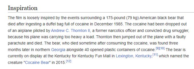 O filme “Cocaine Bear” foi inspirado num caso de um urso que morreu com uma overdose de cocaína.