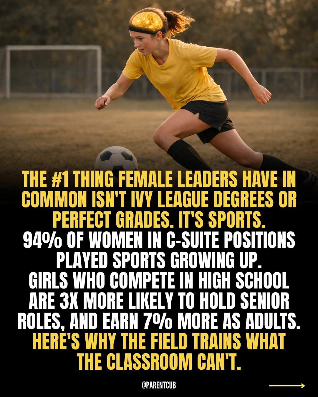 94% of women in C-suite positions played sports. 52% competed at the college level. That’s not coincidence. That’s neuroscience.