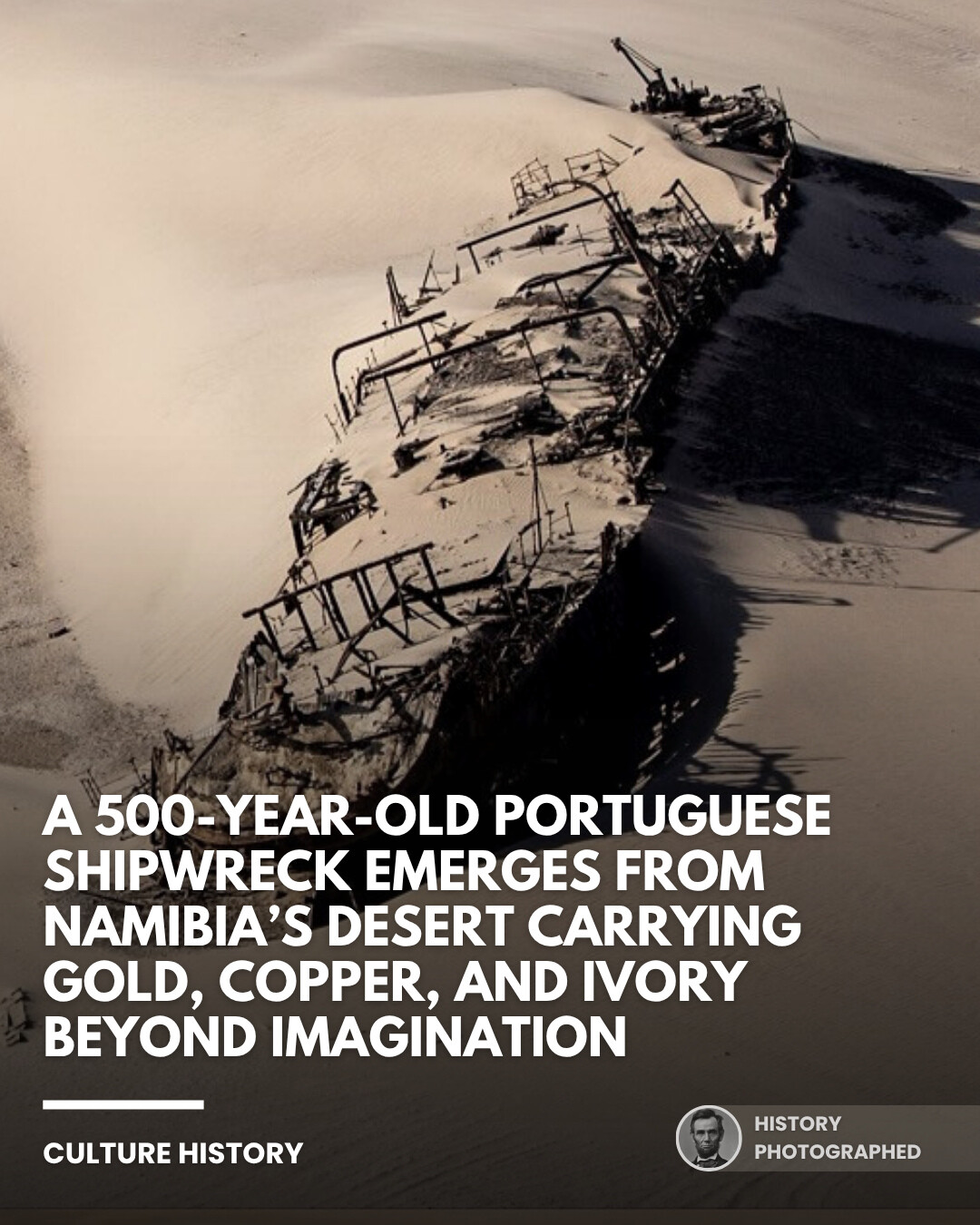In 2008, diamond miners in Namibia’s desert uncovered the Bom Jesus, a 500-year-old Portuguese shipwreck lost since 1533. Its cargo included over 2,000 gold coins worth 13 million dollars, hundreds of copper ingots, and 100 elephant tusks.