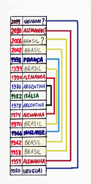 Somando 1990 + 1974 = 3964.Seguindo esta lógica, poderia se ter adivinhado o ganhador da copa do