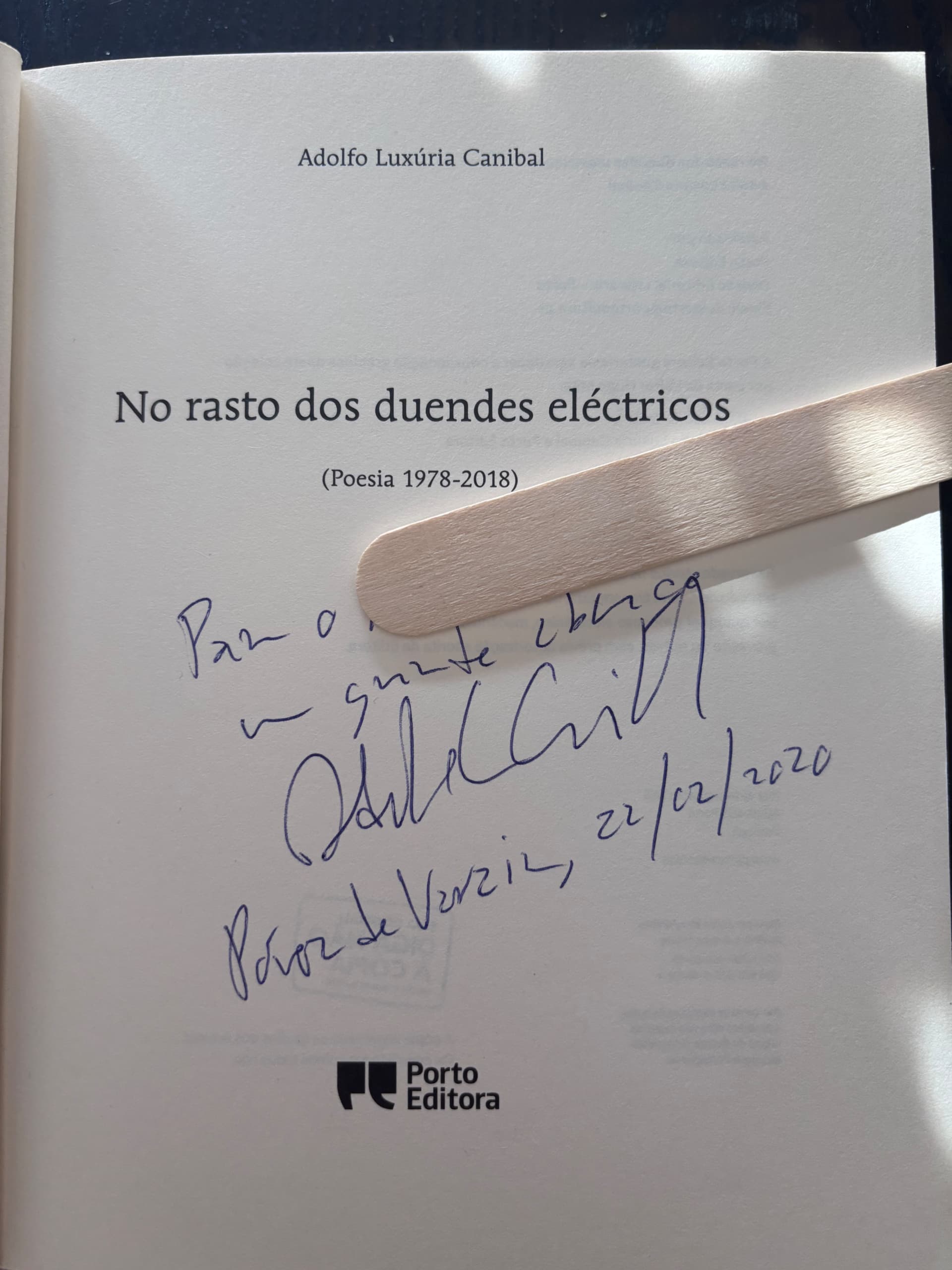 Guardo na prateleira do centro do meu quarto uma dedicatória do Adolfo no livro que me ofereceu quando coincidi com ele e com um amigo comum com o meu pai.