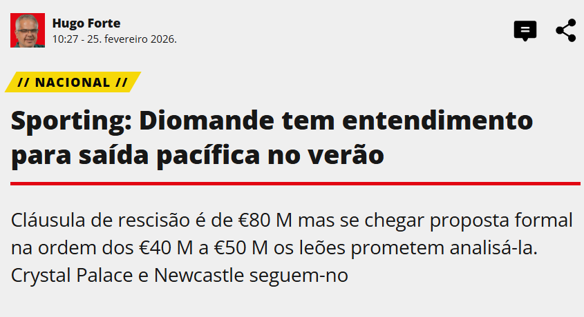 Se continuar de leão ao peito ficaremos muitíssimo mais fortes, logo se formos campeões ou garantirmos a Champions via 2º lugar não temos necessidade de negociar este jogador, e muito menos pelos valores ridiculos avançados pelos jornais dos bocas de piano!!