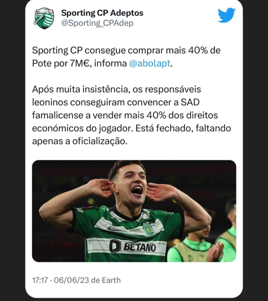 Excelente negócio da direção, nunca pensei que fossem buscar uma parte significativa do passe do Pote por um valor tão baixo. Não me surpreende que seja uma borla relativa ao Rafael Leão.