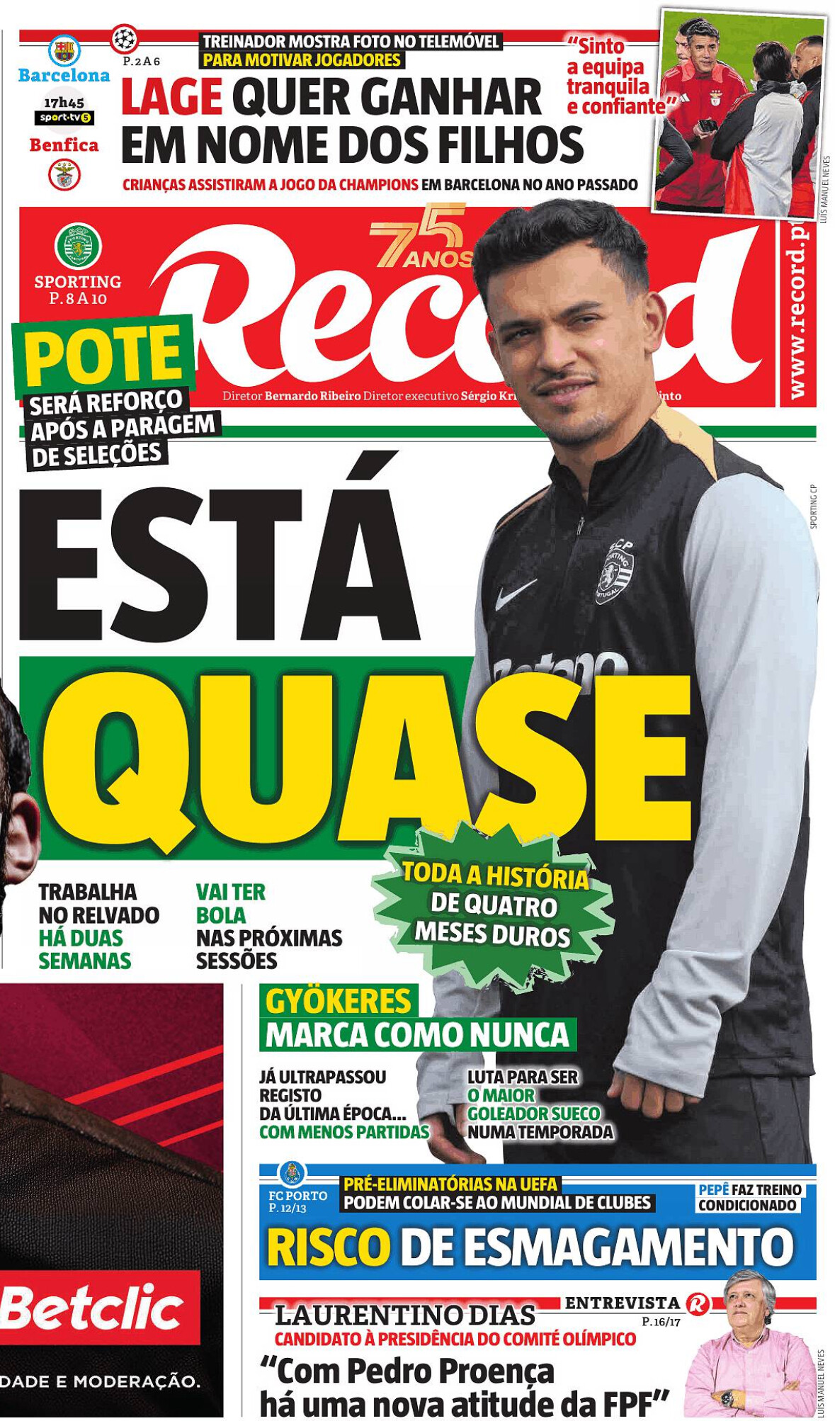 Ainda bem que temos agora este interregno para ele voltar bem mesmo. Se não sente dores, ainda melhor. O Pote merece muito lutar por este título.