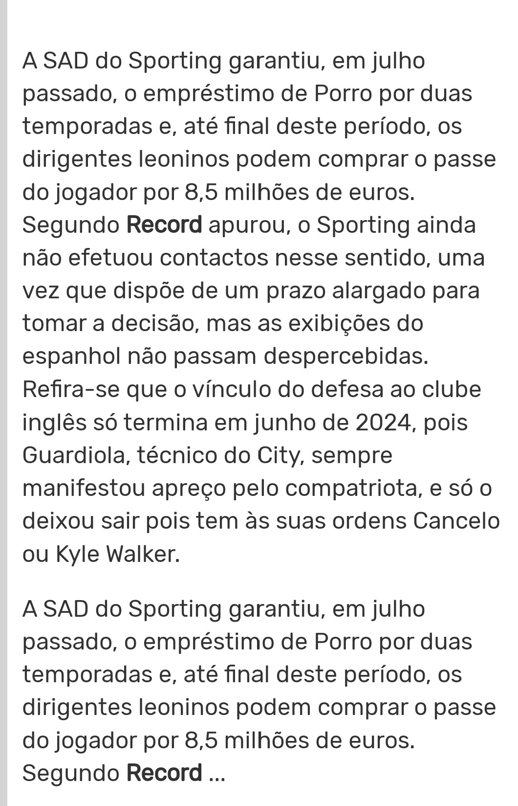 Certo, a questão é que com esta direção nunca se sabe, pode vir um “tubarão” e aliciar o jogador e o City, pode acontecer muita coisa, se já temos o dinheiro, e até para motivar o jogador e outros era oficializar já, o Porro merece, nós merecemos, o Amorim merece.