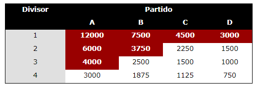 Utilizamos o metodo de Hondt que se baseia numa matriz que para mim nao faz sentido.