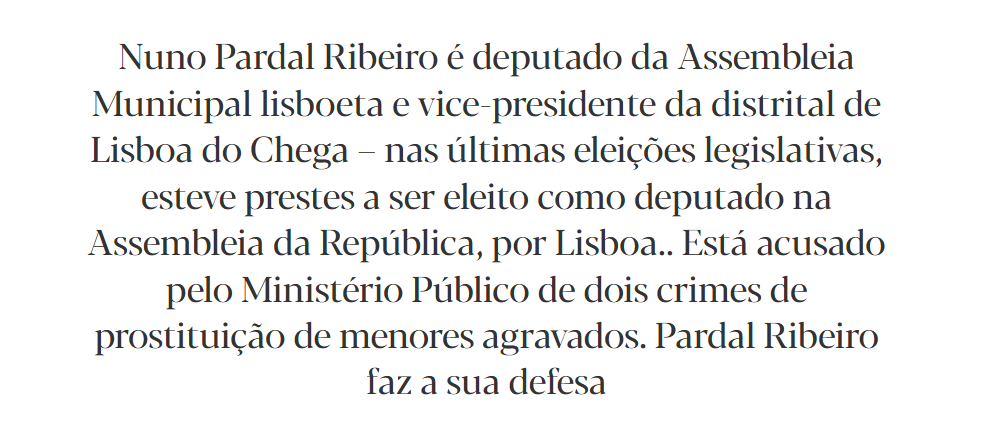 E nem me venham com discursos ideologicos fanáticos como resposta. A unica coisa que diferencia o Chega, é o discurso anti-imigração, porque de resto, fazem parte do sistema, estão cheios de criminosos e corruptos nas suas fileiras, aceitam qualquer incompetente desde que tenha discursos radicais, são socialistas apesar de dizerem que não são (vide TAP, pensões) e são liderados por um lampião asqueroso que antes era um pau mandado do Vieira para mentir e mentir em programas de televisão.