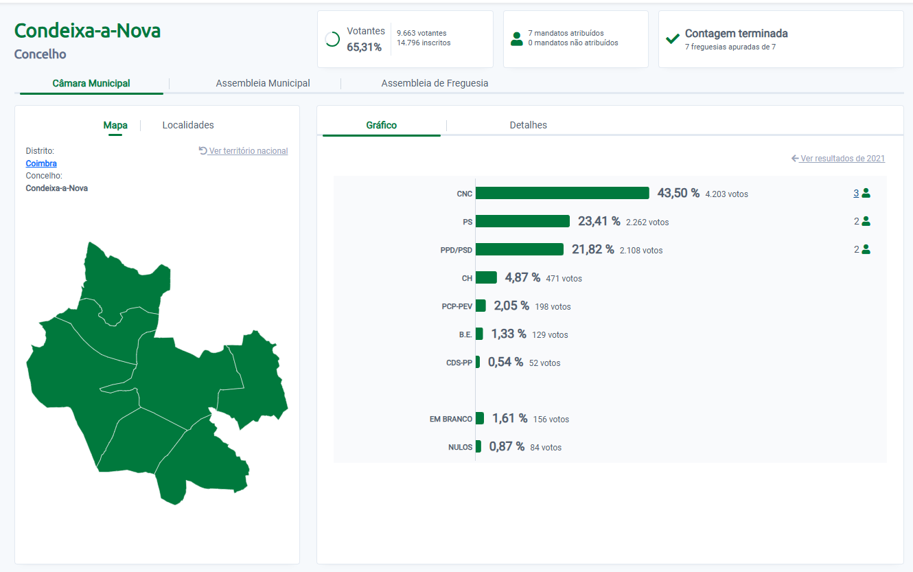 Metade dos votos contados em Montemor-o-Velho, CDU tem menos de 200 votos de vantagem em relação ao PS. Mora ainda não tem dados oficiais.