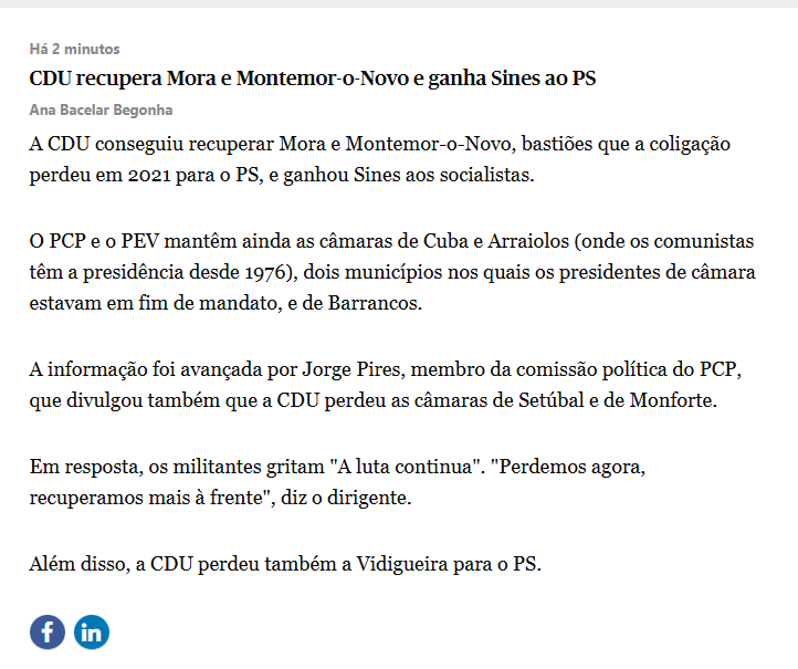 Há 4 anos a CDU teve 19 camaras, vamos ver com quantos vai ficar hoje. Para já vão com 4 e vai ser mais algumas.