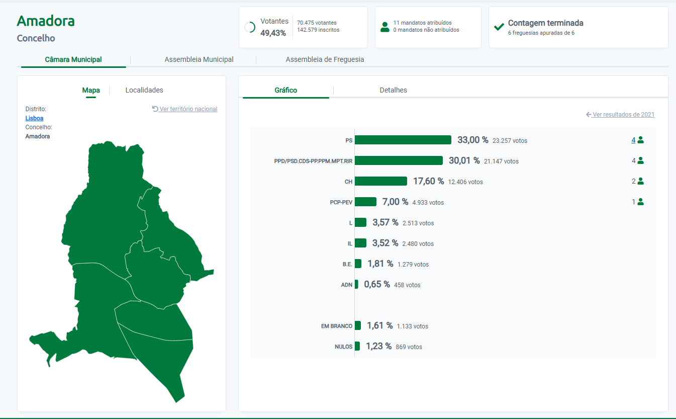 Vitória clara do PSD, o PS aguentou melhor que o expectável e recuperou da imagem de derrocada das legislativas. A CDU ainda sobrevive, uma noite muito positiva do CDS. BE e IL felizmente na insignificância total.