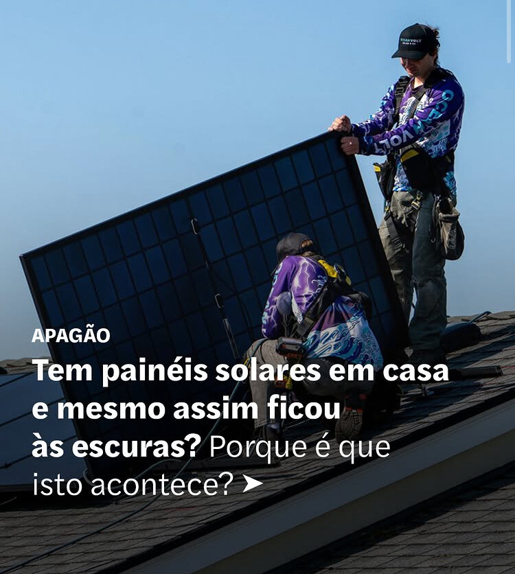 Obrigado pela explicação detalhada para tentar perceber melhor sobre este assunto. Eu estou mais familiarizado com as UPS, ou seja, carrega pela ficha e se faltar a luz tenho um x de tempo até a bateria ficar descarregada. E eu pensava que todos os painéis solares tinham essa bateria integrada para quando faltasse a luz, ter pelo menos energia para alimentar dois ou três eletrodomésticos.