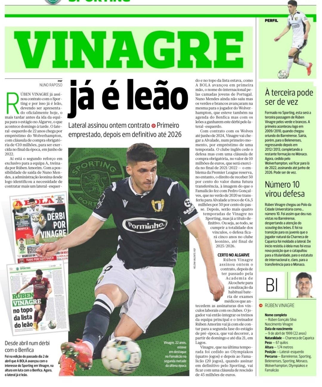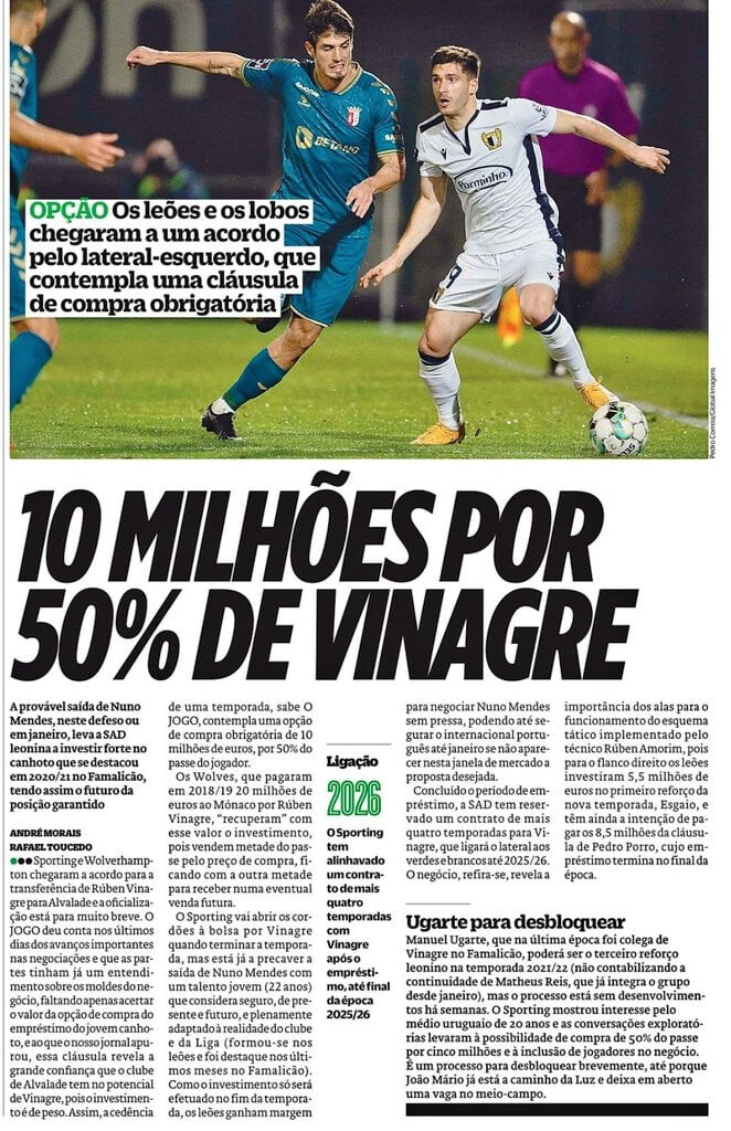 De acordo com o diário desportivo, numa primeira fase, Vinagre chega por empréstimo. No entanto, o negócio contemplará uma cláusula de compra obrigatória no valor de 10 milhões de euros, quanto ao vínculo do internacional sub-21, e após o término do empréstimo, os leões oferecem um contrato até 2025/26 a Vinagre.